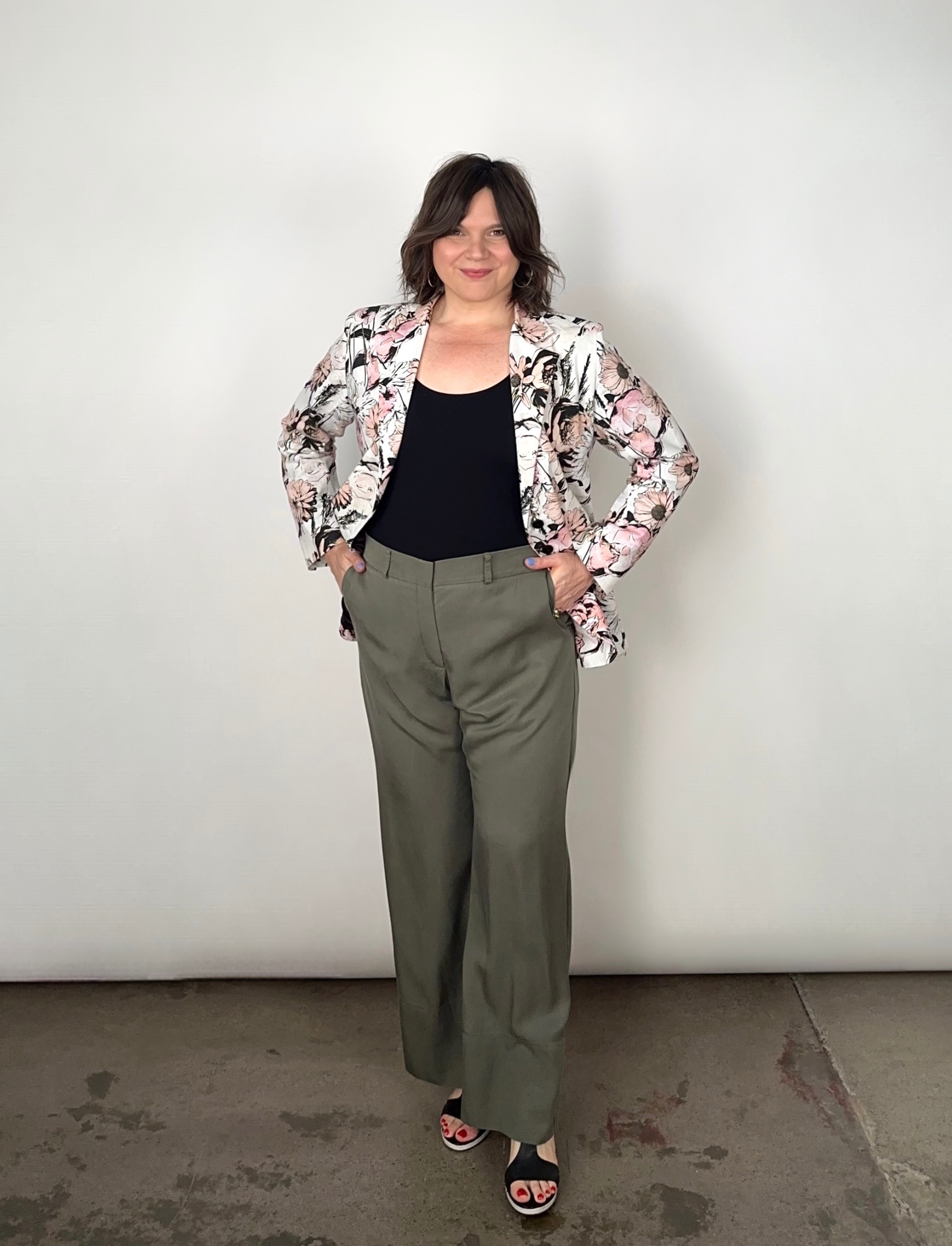 Style with pieces from your closet like a solid coloured blouse (fully or partially) tucked in, a fitted tank, or a lightweight sweater for a more relaxed look.