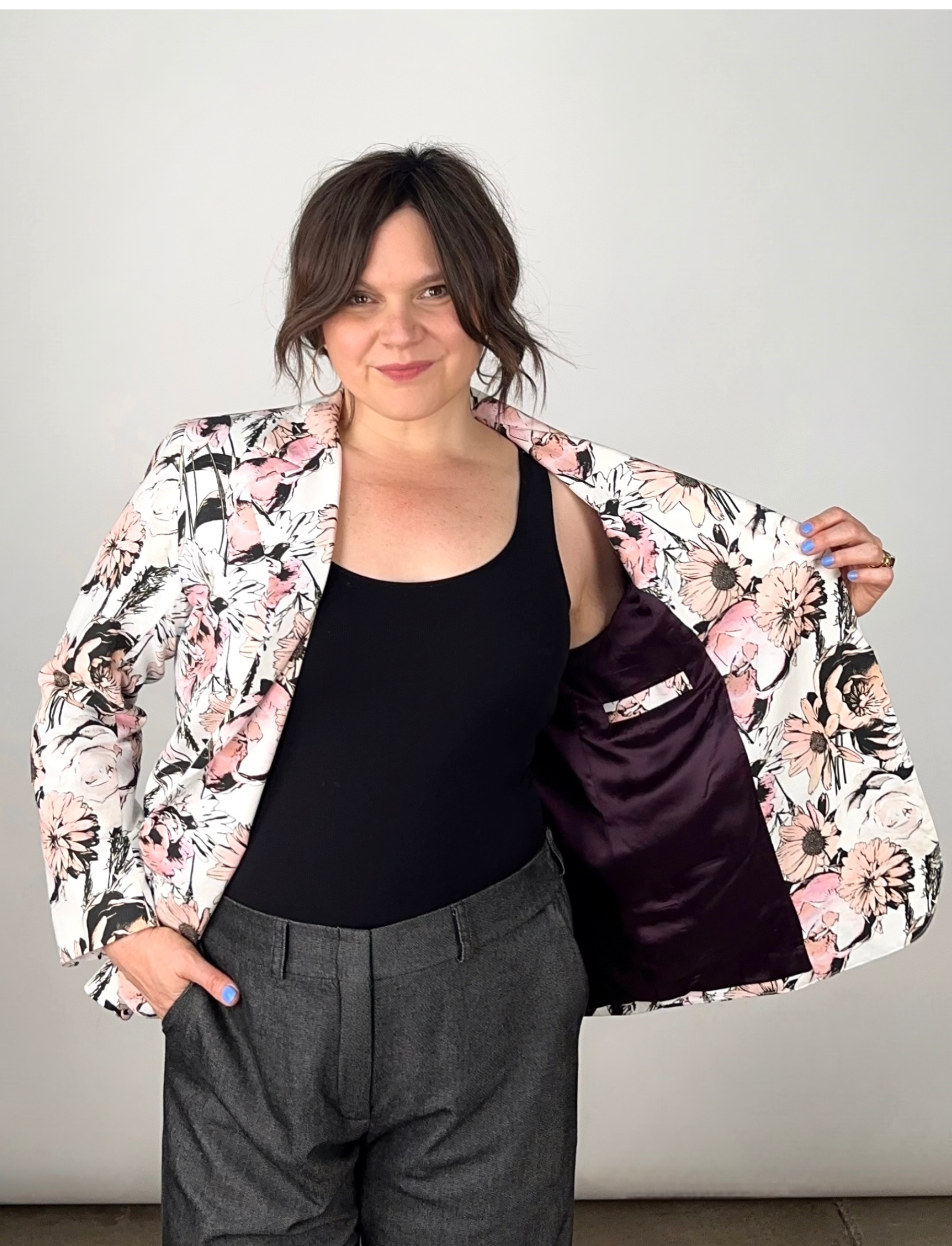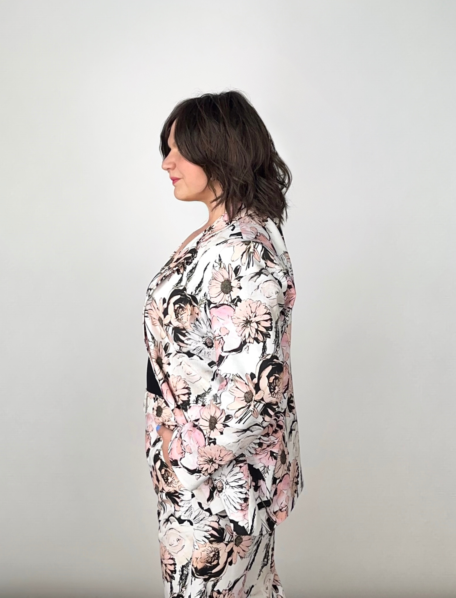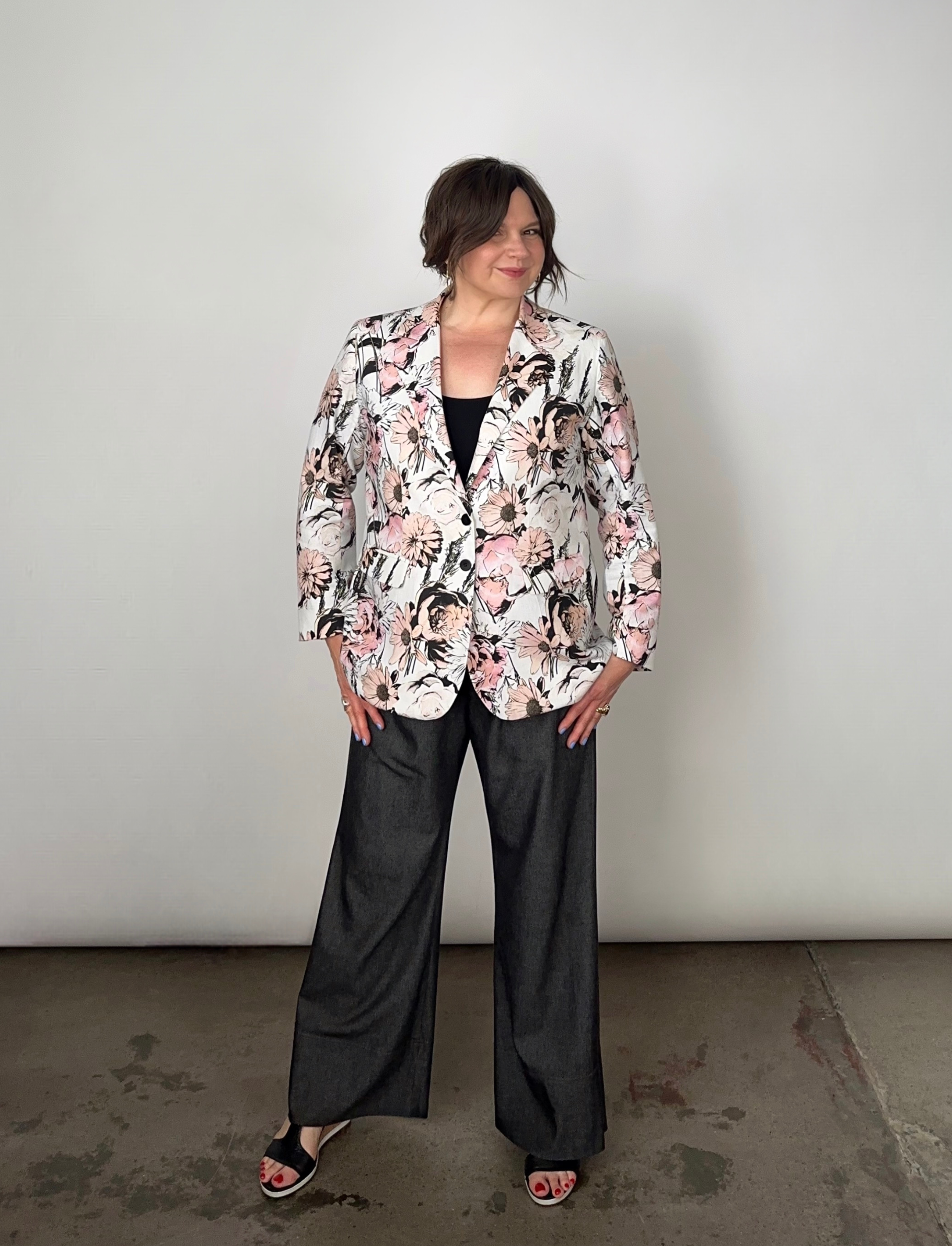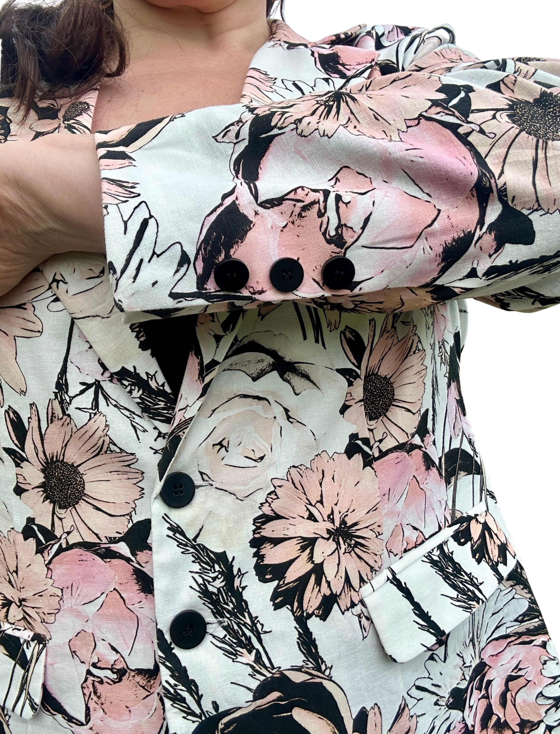 The Power Move Blazer is a strong and unforgettable statement piece. Using one of our fave fabrics previously seen in the Take Me On Maxi Shirt Dress and Bow to No One Blouse, I’ve reimagined it as a tailored blazer that works just as beautifully as a full suit as it does a standalone layer.